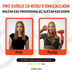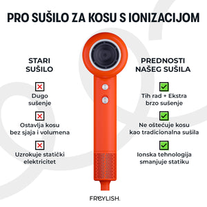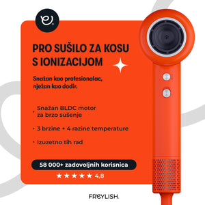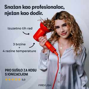 Sanjaš o brzom i nježnom sušenju kose bez suvišne buke? Freylish® PRO ionsko sušilo za kosu kombinira snažan BLDC motor, naprednu ionsku tehnologiju i izuzetno tihi rad kako bi ti omogućilo savršenu frizuru bez kompromisa. Njegov elegantan dizajn i pametne funkcije čine ga neizostavnim alatom za svakodnevnu njegu kose.