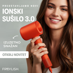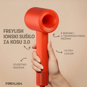 Doživi savršeno sušenje s Freylish® Ionskim Sušilom za Kosu 3.0 – novom generacijom legendarnog sušila Freylish.